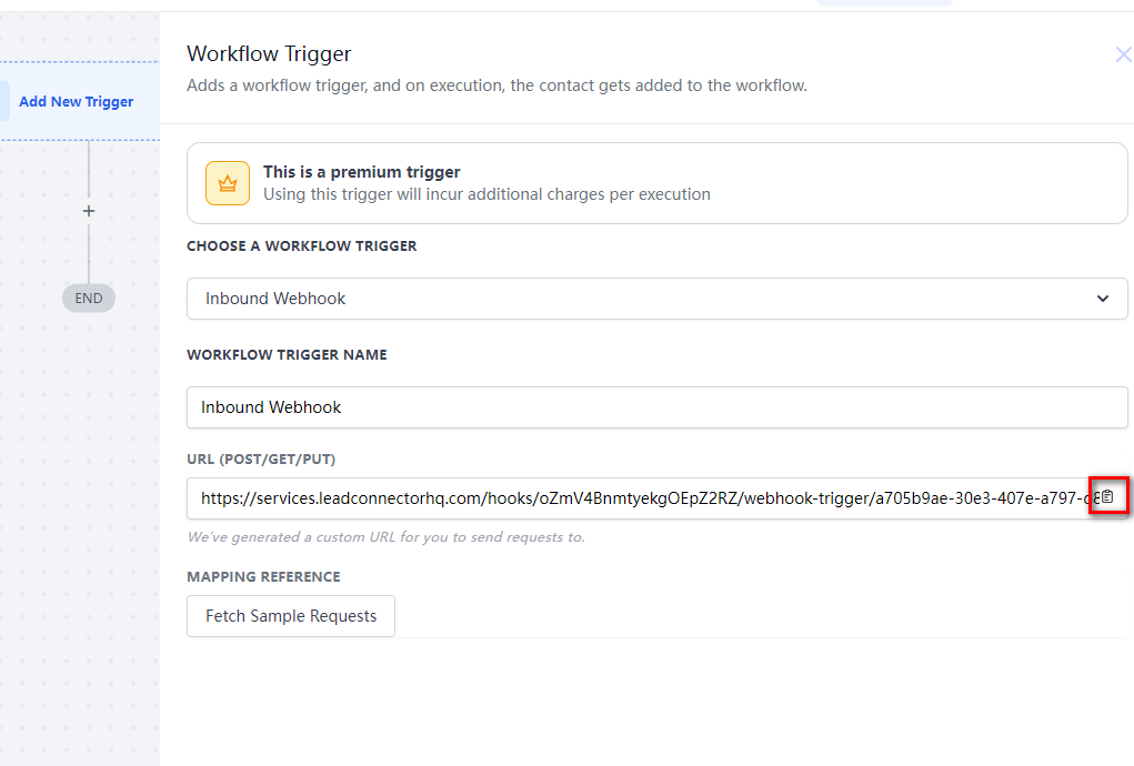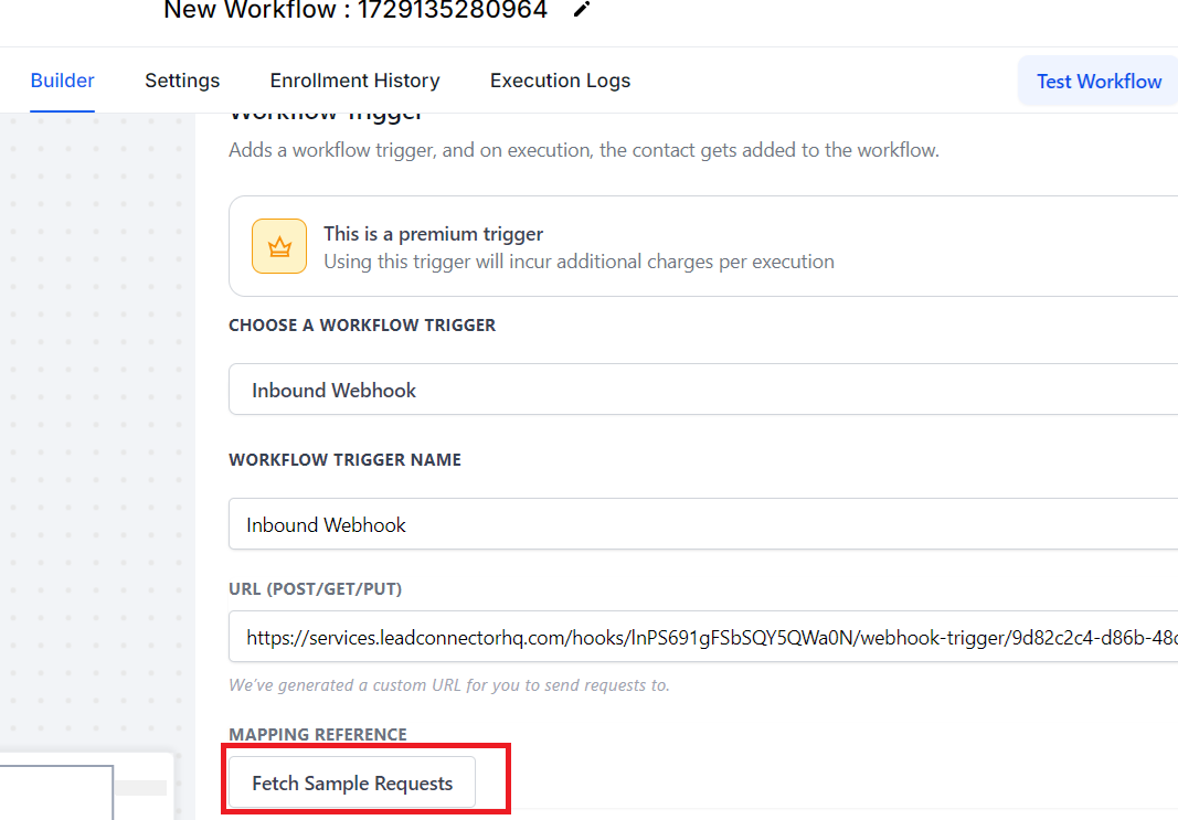Go back to GoHighLevel website, click “Fetch Sample Requests” button to get lead information